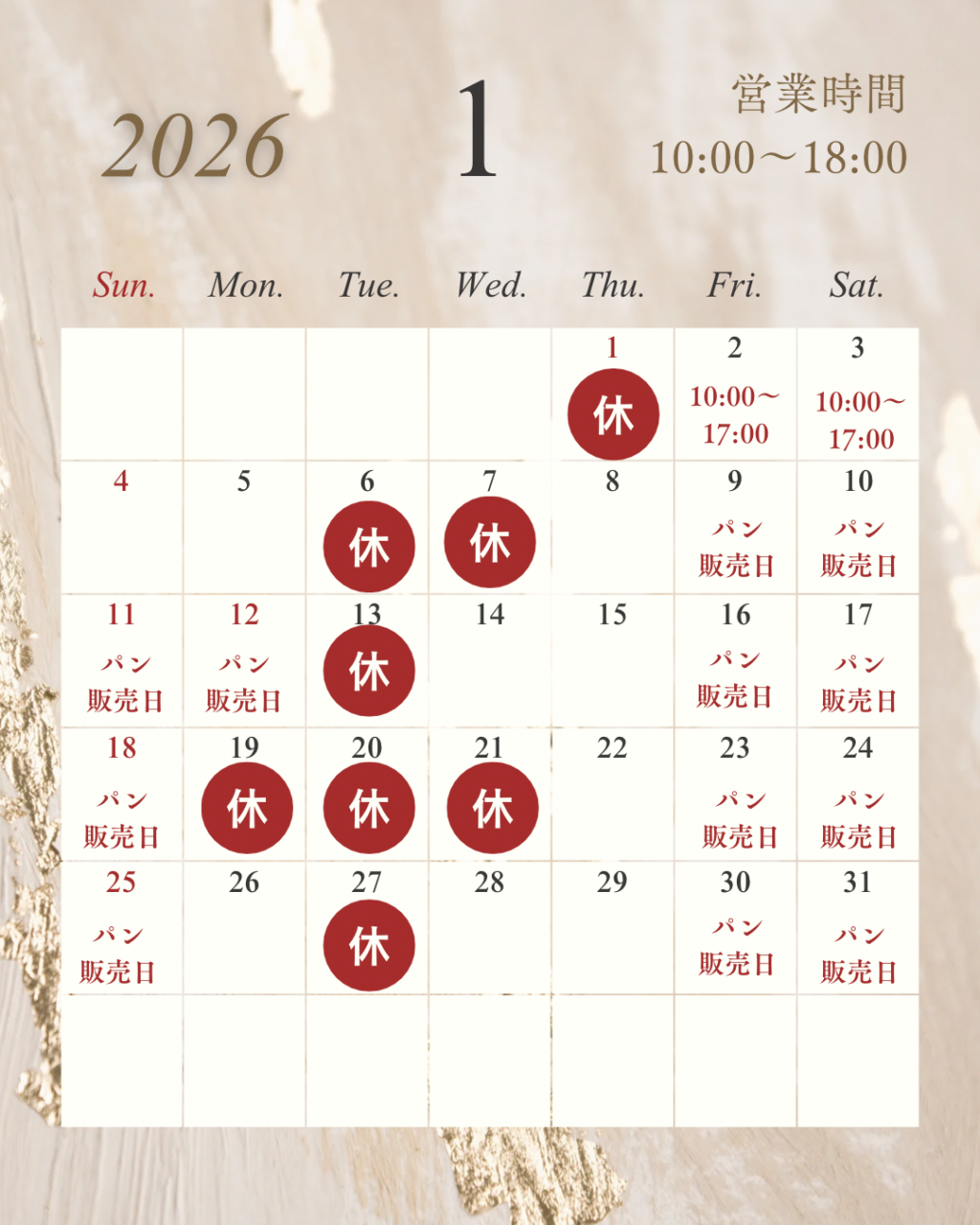 1月は毎週火曜日に加え、第一、第三水曜日の他、19日(月)も